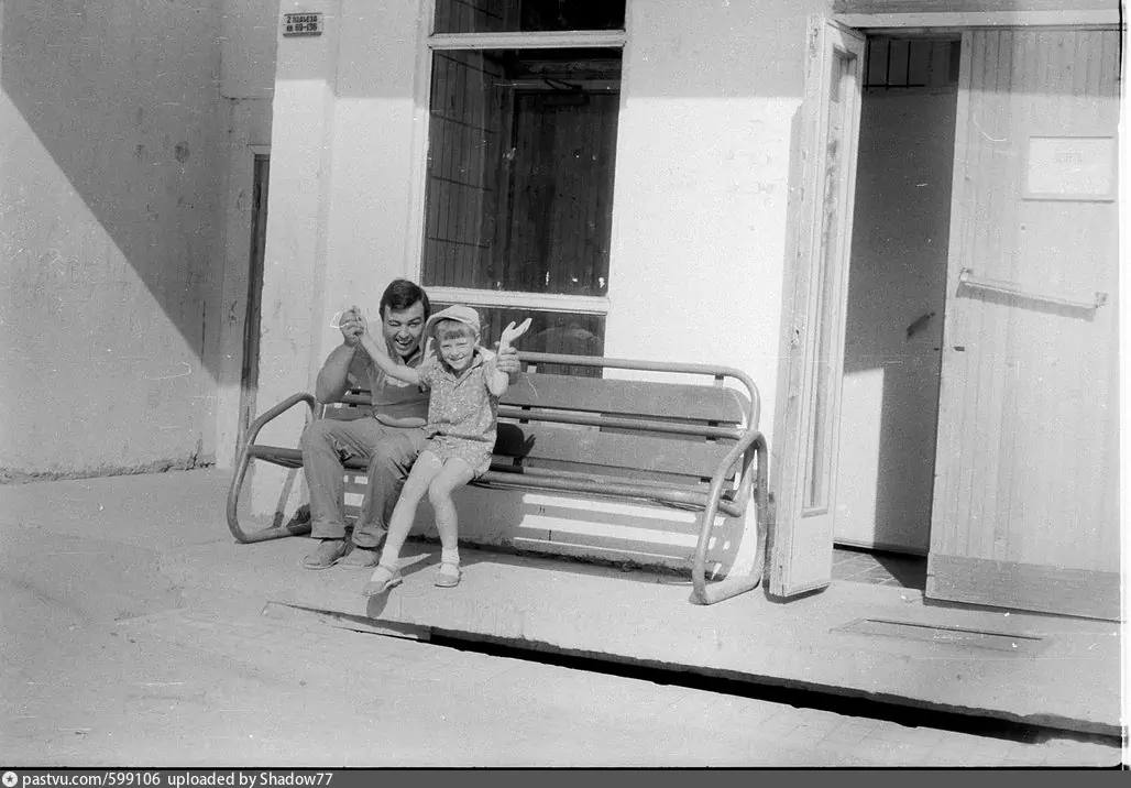 Отец и дочь сидят на ул. Авиаторов, 8