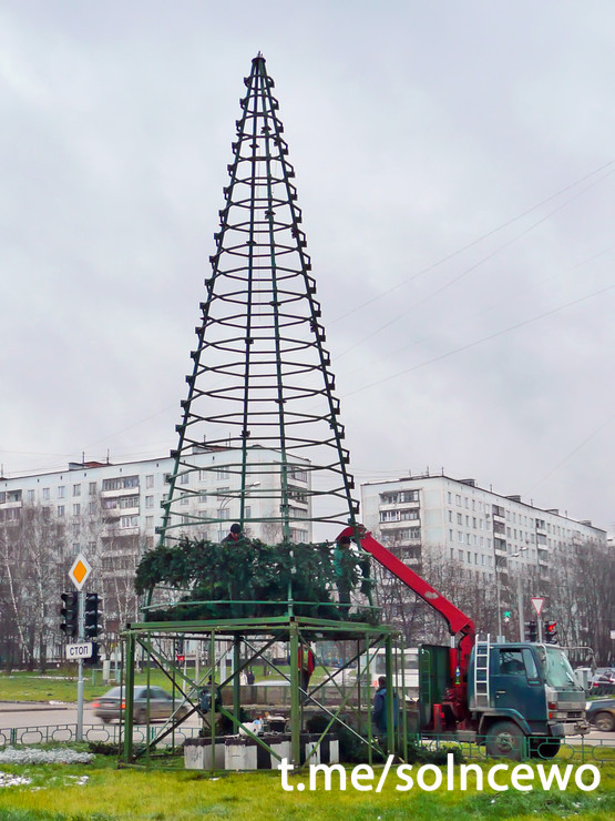 Елку наряжают на пересечении Щорса и Солнцевского