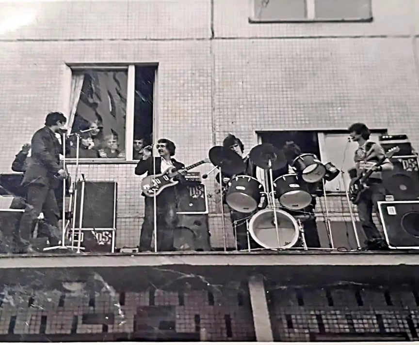 Солнцевский ВИА выступает на козырьке подъезда